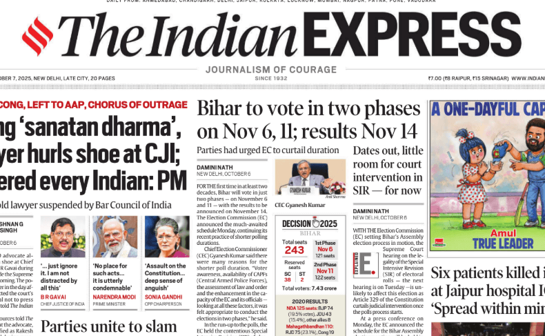 Indian Express is a major Indian daily newspaper covering national, international, business, sports, and cultural news, with a strong focus on investigative journalism and editorial commentary.